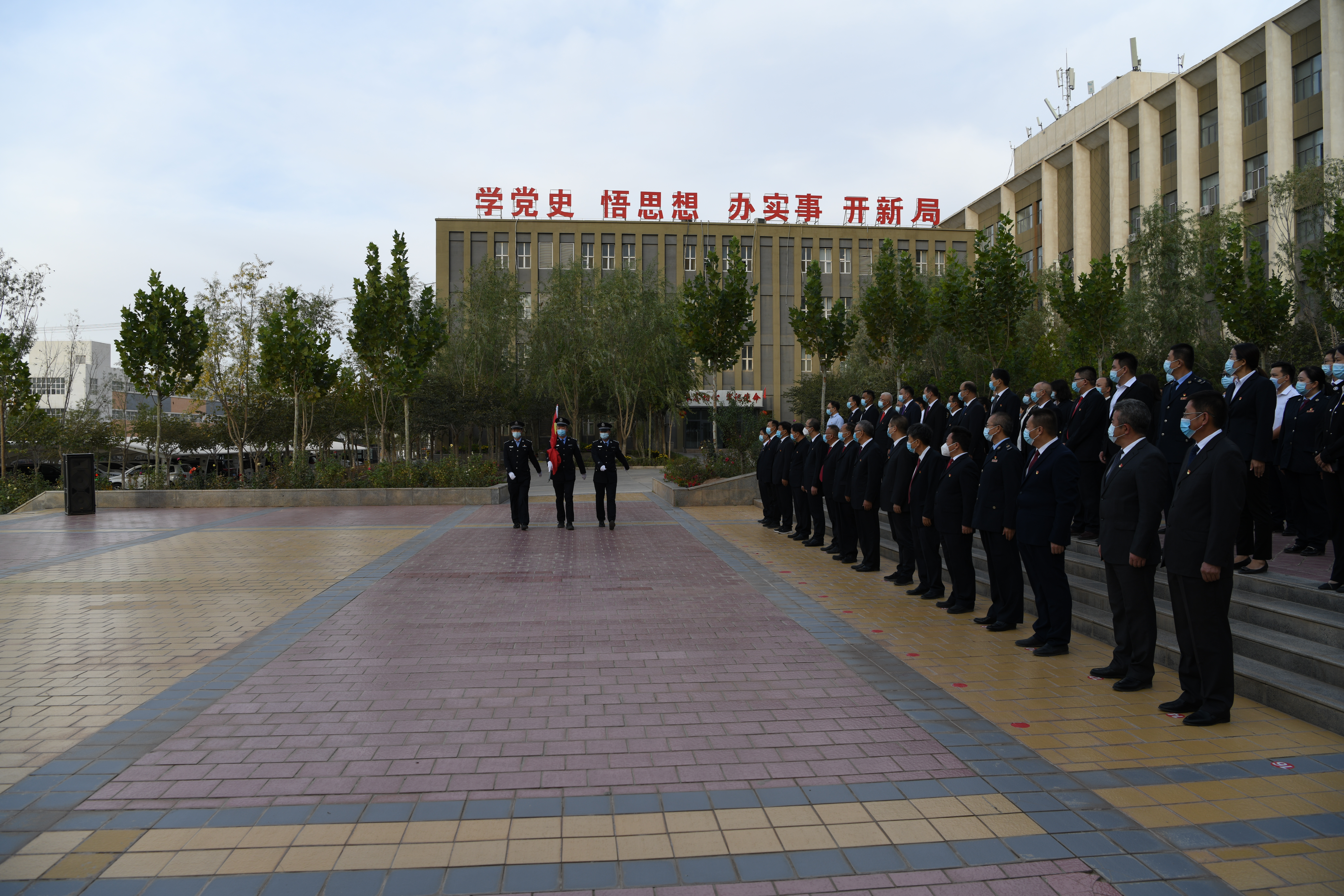 秋风舞国旗,晨曦庆华诞。为庆祝中华人民共和国成立73周年,10月1日上午,喀什经济开发区隆重举行“奋进新征程·喜迎二十大”暨“十·一”国庆升国旗仪式。党工委委员、管委会副主任缪陆军同志主持,开发区各级党员干部职工身着正装,严格落实疫情防控要求和个人防护措施,参加升国旗仪式。