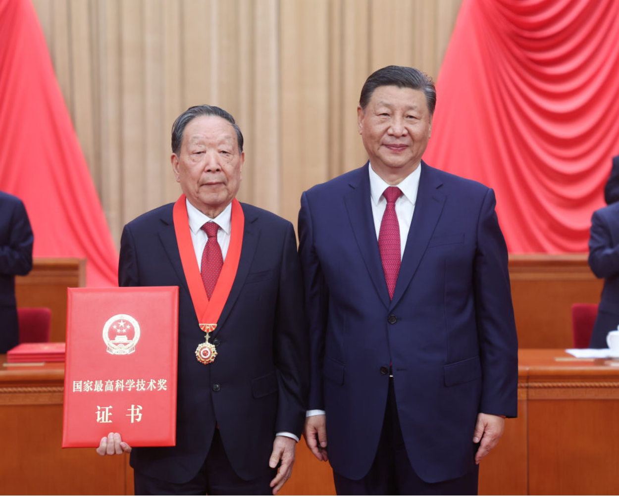 6月24日,全国科技大会、国家科学技术奖励大会和中国科学院第二十一次院士大会、中国工程院第十七次院士大会在北京人民大会堂隆重召开。中共中央总书记、国家主席、中央军委主席习近平向获得2023年度国家最高科学技术奖的清华大学薛其坤院士颁奖。新华社记者 谢环驰 摄