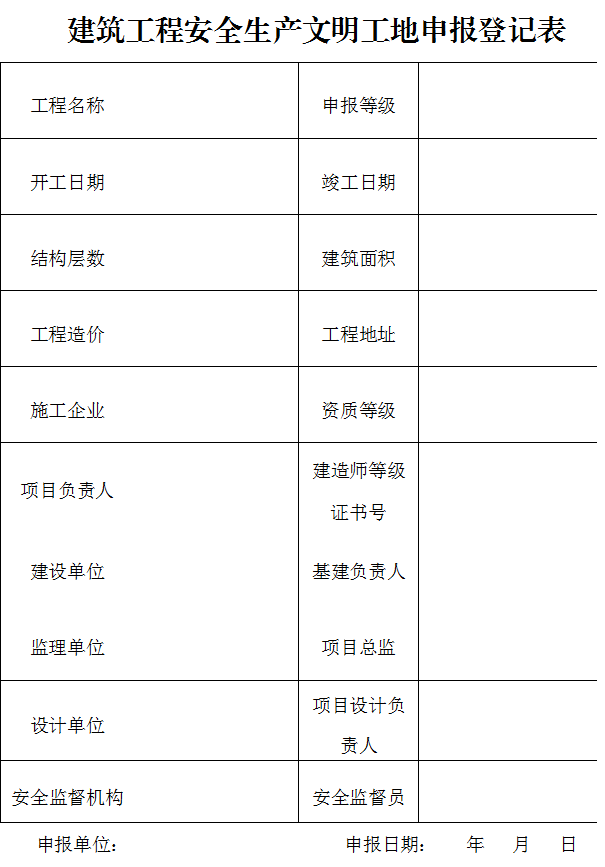 第十一条申报开发区安全文明工地的工程项目,应填报《建筑工程安全生产文明工地申报登记表》及相关附件(含创建安全文明工地计划书;施工许可证、安全生产许可证复印件;项目管理人员名册及主要负责人、项目负责人、专职安全生产管理人员安全考核合格证书复印件(加盖公章),开工后15天向开发区质监站提出申请。