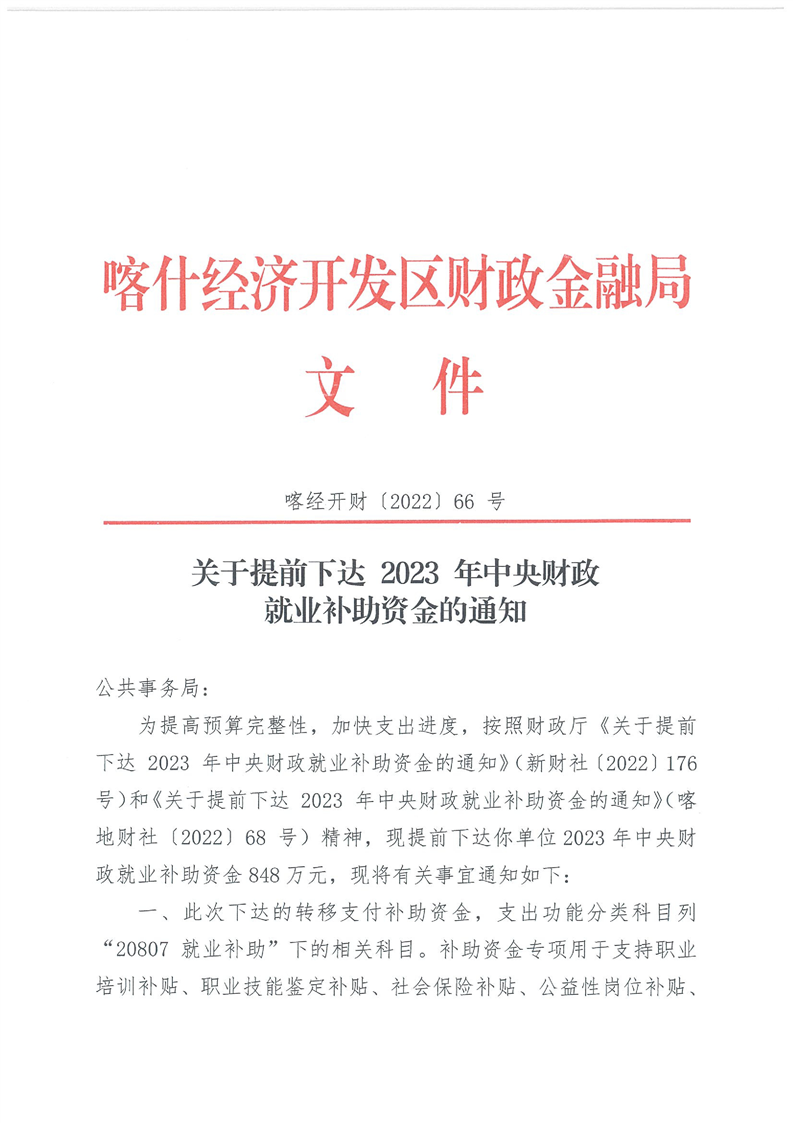 关于提前下达 2023 年中央财政就业补助资金的通知-k8体育