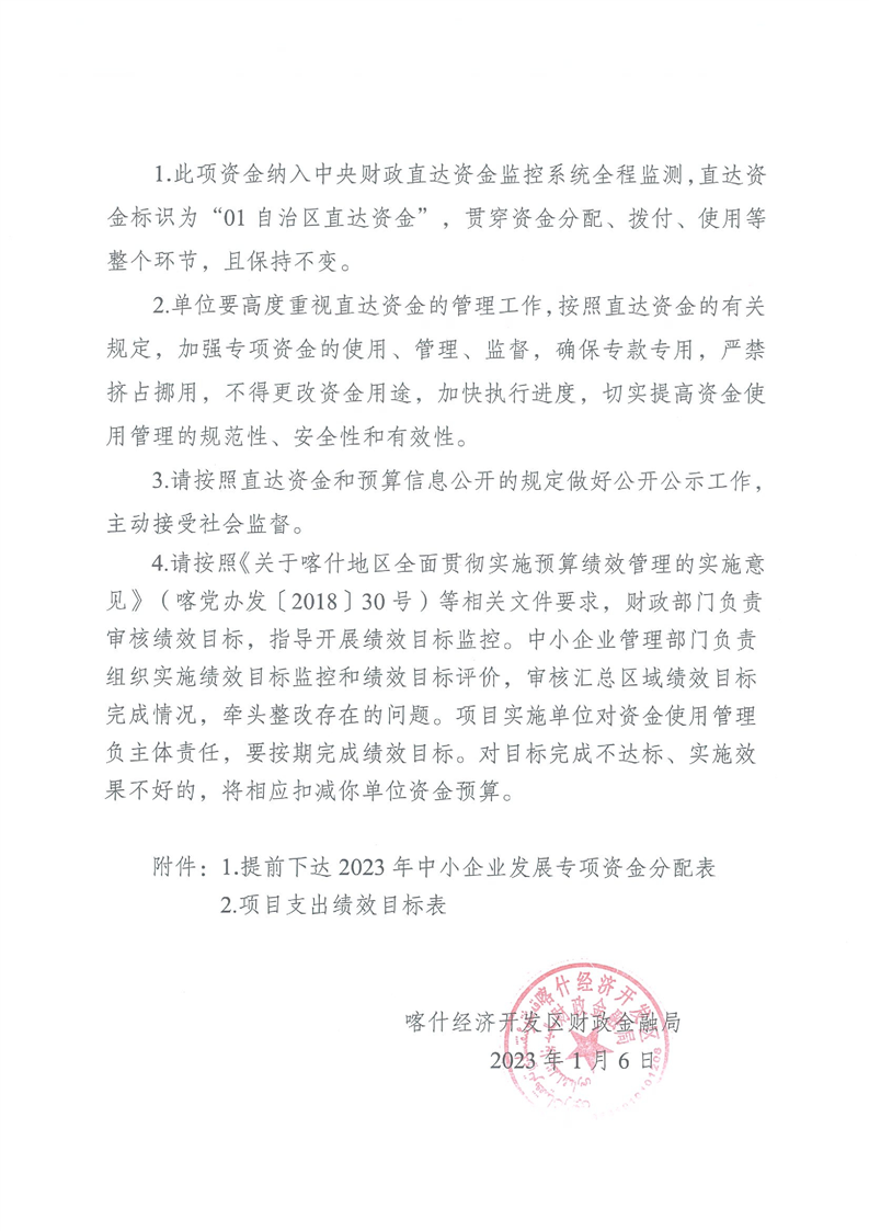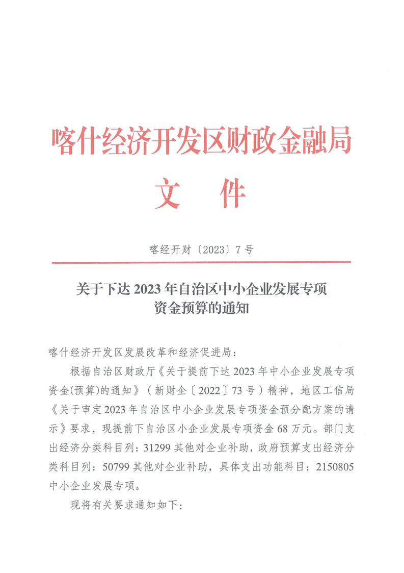 关于下达2023年自治区中小企业发展专项资金预算的通知-k8体育