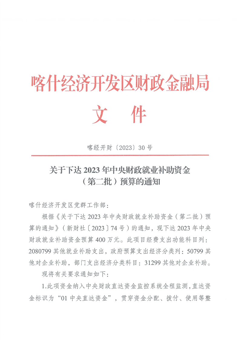 关于下达2023年中央财政就业补助资金(第二批)预算的通知-k8体育