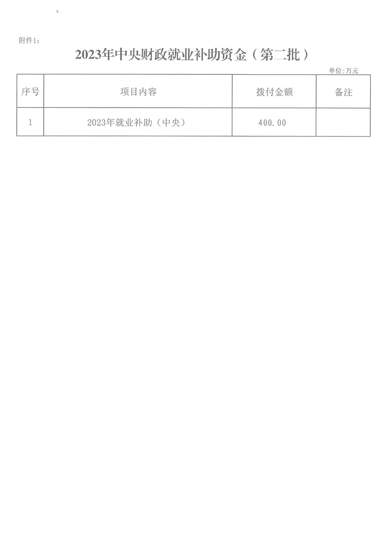 关于下达2023年中央财政就业补助资金(第二批)预算的通知